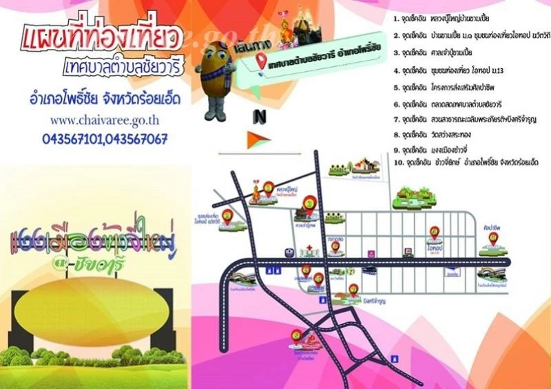 ยินดีต้อนรับเข้าสู่เทศบาลตำลชัยวารี ติดต่อสอบถาม โทรศัพท์ : 043-567101, 043-567230, 043-567067, 043-567404 โทรสาร (แฟกซ์): 043-567125 E-mail : tbchaivaree@gmail.com, admin@chaivaree.go.th